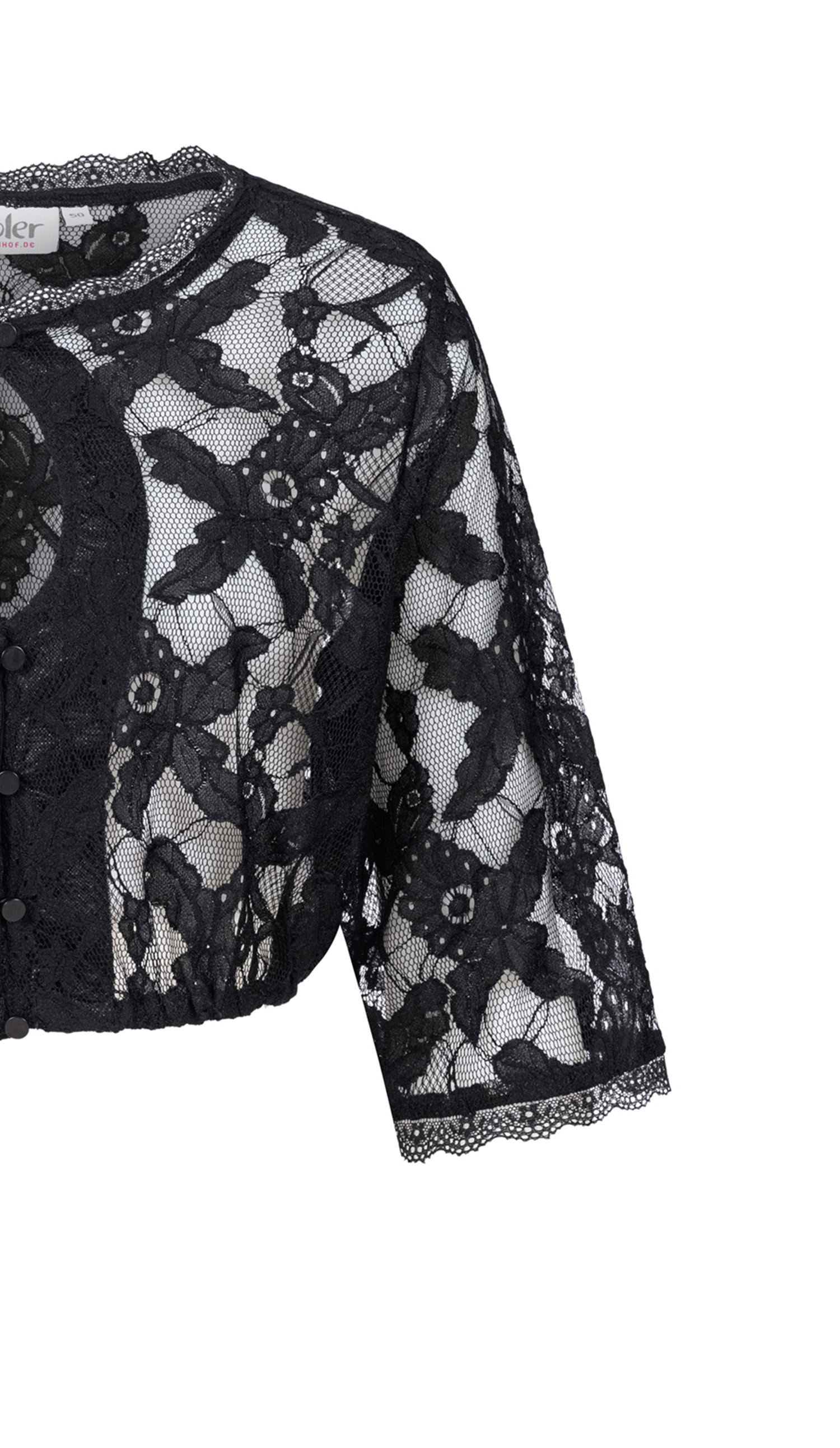 Die elegante Dirndlbluse Claudia von Nübler ist aus feiner, transparenter Spitze gefertigt und besticht durch ihr florales Muster. Der runde Ausschnitt mit kleinem Schlüsselloch-Detail sowie die durchgehende Knopfleiste vorne verleihen ihr eine feminine Note. Halbtransparente kurze Ärmel mit zarter Spitze machen die Bluse zu einem stilvollen Begleiter für festliche Anlässe. Diese Bluse lässt sich perfekt zu verschiedenen Dirndln kombinieren und sorgt stets für einen edlen Auftritt.