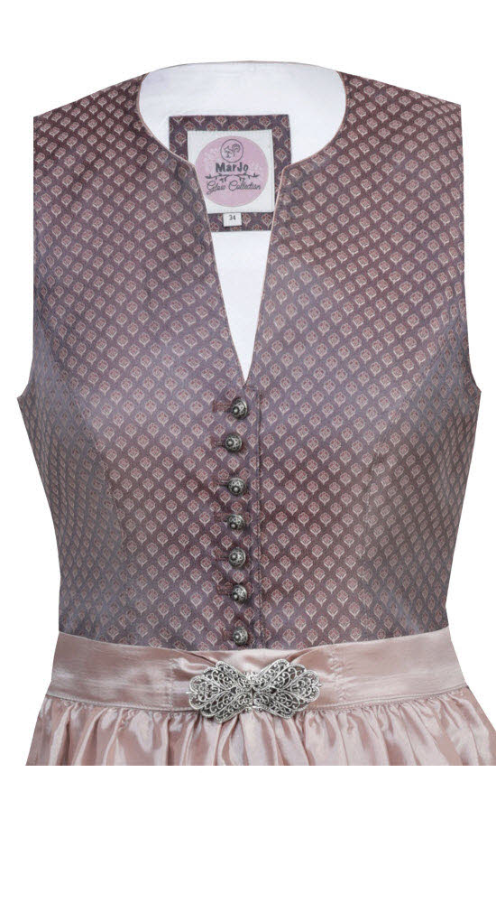 Das Dirndl Evi in Pflaume von Marjo Trachten ist ein wunderschönes Dirndl, das mit seinem klassischen Design und liebevollen Details begeistert. Das Dirndl besticht durch seinen V-Ausschnitt und die elegante Knopfleiste, die dem Mieder eine feminine Note verleihen. Auf dem gesamten Dirndl ist ein zartes Blumenmuster, das sich über das gesamte Dirndl ausbreitet. Die zarte in beige gehaltene Schürze mit Schließe rundet das Gesamtbild perfekt ab und sorgt für einen romantischen Touch. Das Dirndl Evi ist nicht nur optisch ansprechend, sondern auch hochwertig verarbeitet und angenehm zu tragen. Die klassische Farbe des Dirndls ist zeitlos und vielseitig kombinierbar, sodass Sie es zu verschiedenen Anlässen tragen können. Tipp:Das Outfit wird durch eine passende Dirndlbluse mit einem herzförmigen Ausschnitt in Schwarz perfektioniert. Ein Dirndl-BH ist immer zu empfehlen, da er das typische Dirndldekolleté zaubert.Lieferhinweis:Unsere Dirndl werden, soweit nichts anderes vermerkt ist, ohne Dirndlbluse, Schuhen und Accessoires geliefert.Pflegehinweis:30°C Wäsche, bei mittlerer Hitze bügelnMaterial:100% Polyester