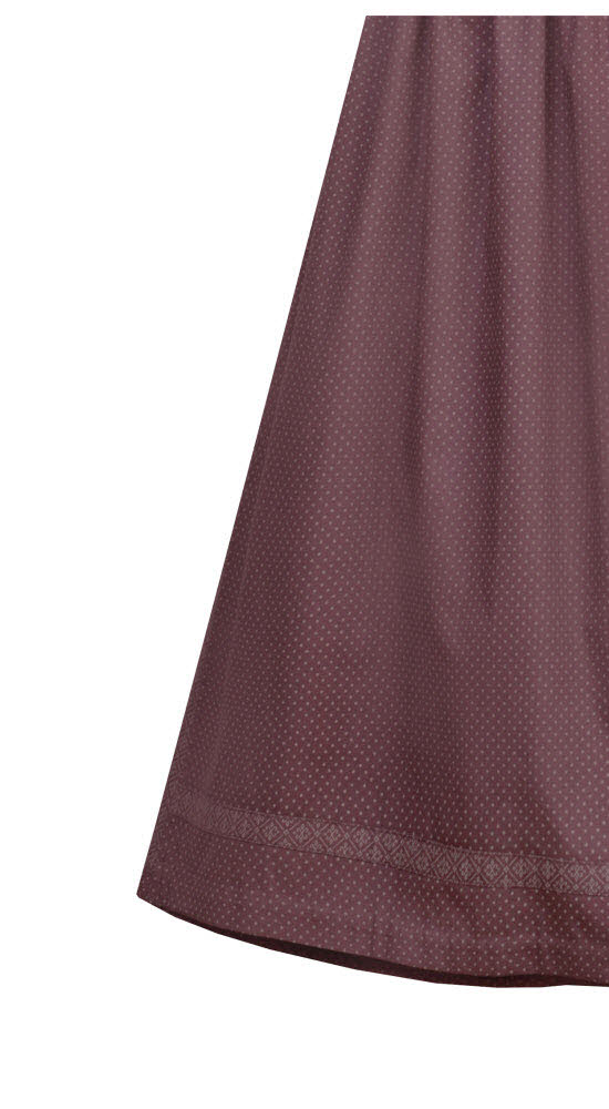 Das Dirndl Karina in Weinrot von Marjo ist einzigartig in seiner schönen filigranen Rautenmusterung. Das Oberteil hat einen V-Ausschnitt und eine wunderschöne Knopfleiste im Altsilberlook. Den Rocksaum schmückt eine Borte im Schürzenmuster. Die Schürze ist gepunktet und wird von einer Borte im Rautenmuster am unteren Ende verziert. Durch eine mit der Knopfleiste harmonierenden Brosche wird das Schürzenband geschlossen und ist ein richtiger Hingucker. Die Reißverschlüsse an den zweiseitigen Eingriffstaschen sorgen dafür, dass Ihre verstauten Kleinigkeiten nicht verloren gehen.