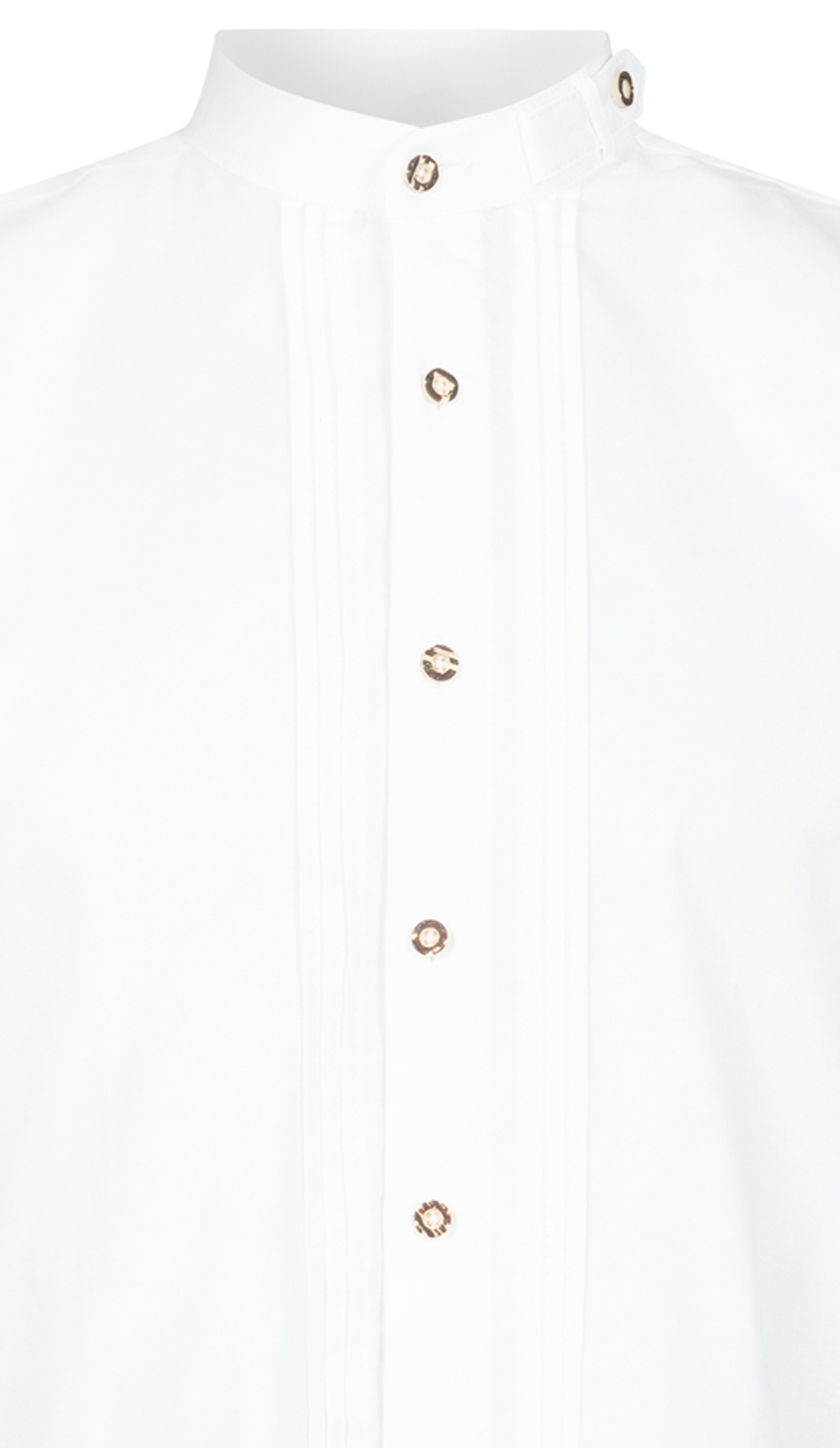 Das Trachtenhemd Johann ist ein schlichter Begleiter, der sich jeder Lederhose anpasst. Die traditionellen Biesen machen es zu einem Hemd für jeden Anlass. Das Hemd ist gerade geschnitten und verfügt über einen Stehkragen. Durch den hohen Baumwollanteil ist es sehr angenehm zu tragen.