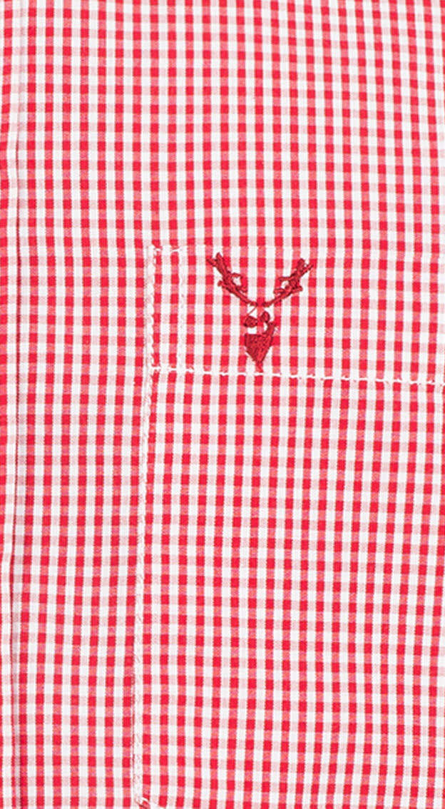 Mit dem Trachtenhemd Rudi in Rot aus dem Hause Nübler sind Sie auf jeder Festlichkeit perfekt gekleidet. Der Slim-Fit Schnitt des Hemds betont die Körperform und ist vor allem für schlanke Träger geeignet. Auf der linken Seite befindet sich ein gestickter Hirsch in der Farbe Rot. Ein Highlight des Hemds sind die Knöpfe in Hirschhornoptik. Dieses Trachtenhemd passt sowohl zur Lederhose als auch zu jeder Jeans. Es kann im Alltag als auch auf jeder Kirchweih, Volksfest oder Familienfest getragen werden.